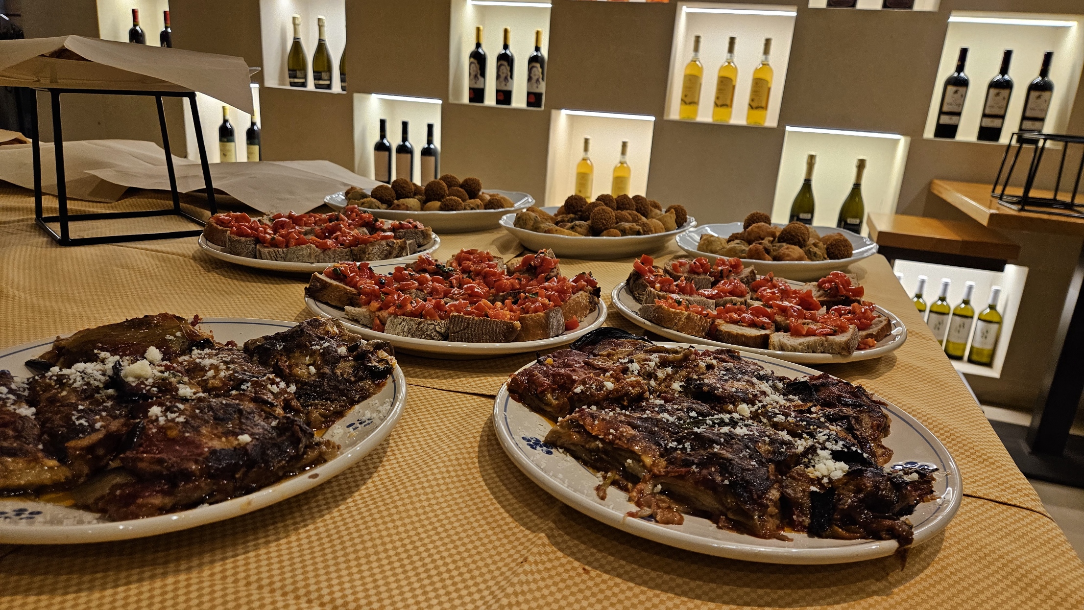Pomodorini confit, olive leccine, accompagnati con nostre salsine.